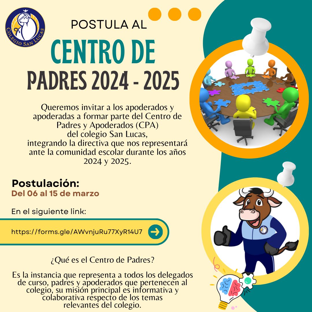 Ante esto, se invita a postular a todo padre, madre o tutor que esté interesado en integrar el CENTRO DE PADRES Y APODERADOS de nuestro establecimiento. Recuerden que el CPA es una agrupación voluntaria que reúne a los apoderados que desean participar y contribuir en la comunidad educativa, a través de diferentes actividades y proyectos. Su principal función es representar a los padres y canalizar sus intereses en relación con el colegio, desarrollando acciones para el desarrollo integral y en beneficio de los alumnos.